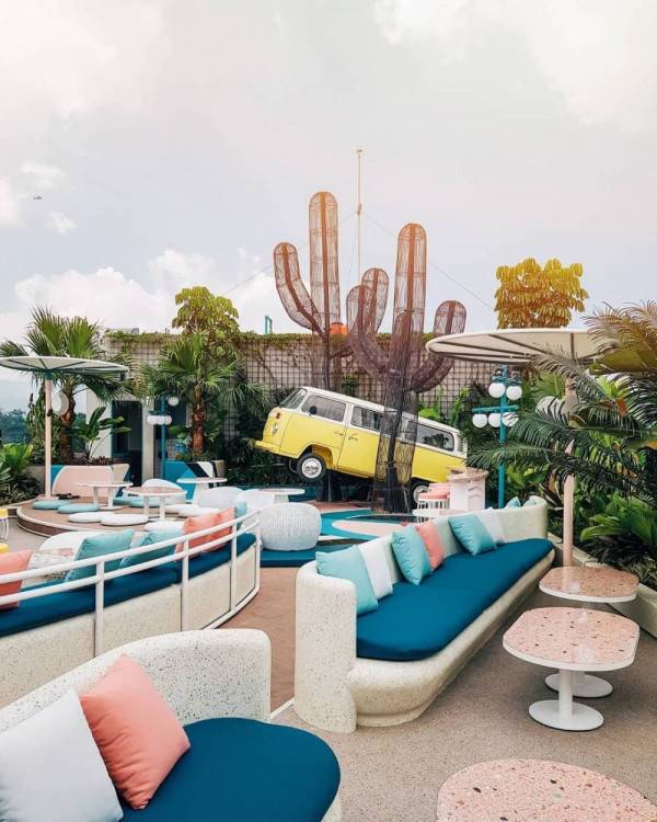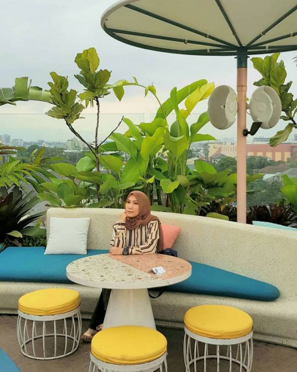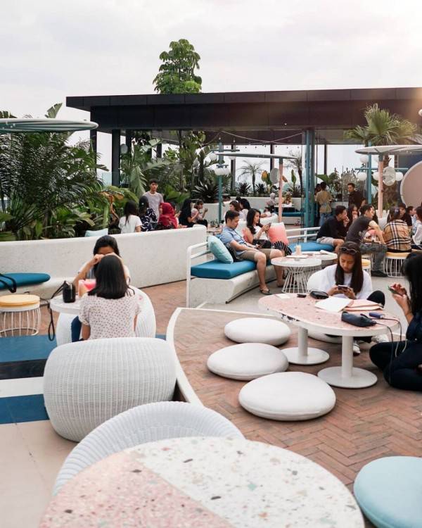2. Sesuai namanya, ini merupakan rooftop cafe berkonsep terbuka dan bertema piknik yang dipenuhi pernak-pernik lucu