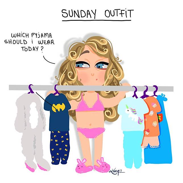12. Pakaian hari Minggumu terdiri dari kaus oblong dan kolor atau baju tidur. Ya gak nih?