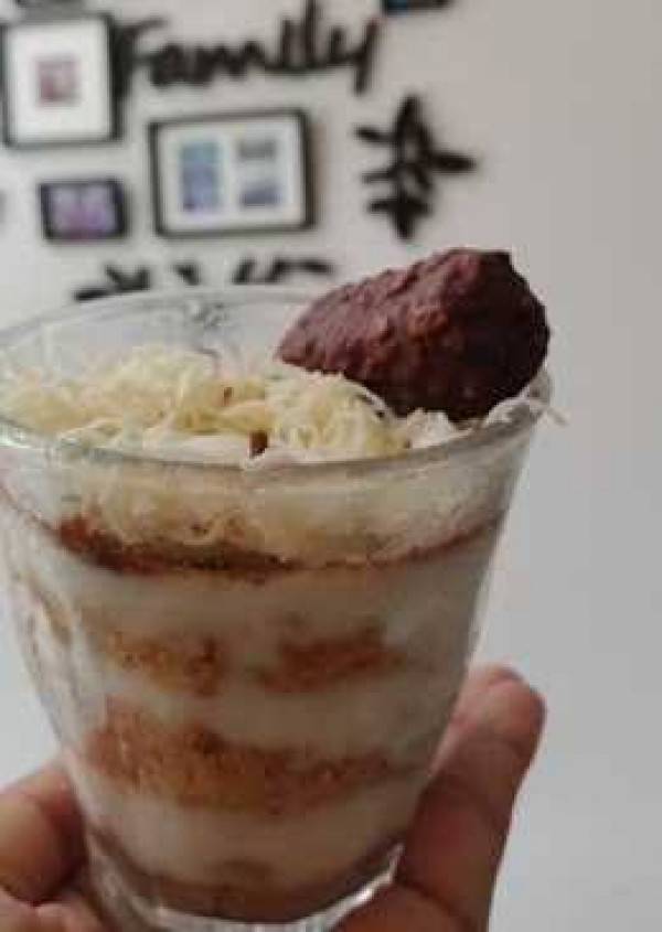 - Kocok sesuai selera jika ingin minuman tercampur biskuit.