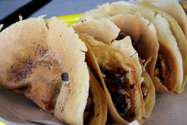 Kue yang memiliki ciri khas kulitnya yangcrispydan diisi dengan pisang didalamnya ini bisa ditemui dimana saja. Adonan kulit kue leker ini terdiri dari tepung terigu, susu, gula dan air lalu dituangkan keatas wajan mini. Tak berapa lama kemudian penjual akan menaburkan potongan kecil pisang, coklat tabor, gula pasir dan tentunya susu kental manis. Setelahnya adonan ini dilipat menjadi setengah lingkaran dan segera bisa disantap.Street foodkhas Indonesia ini memiliki harga yang cukup murah sehingga semua orang bisa membelinya.