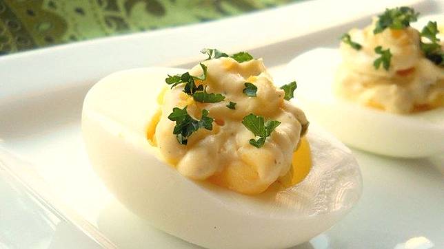 Jadi cara membuatnya adalah rebus telur sampai matang banget, lalu dibelah dua dan ambil kuning telurnya. Kuning telur yang diambil lalu dicampur dengan mustard atau mayones, lalu diisi kembali ke dalam putih telur yang dipotong tadi. Deviled egg cocok banget buat dimakan dingin dan untuk appetizer sebelum makan yang lainnya.
