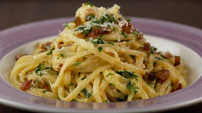 Pertama, telur dicampurkan dengan garam, lada, dan keju parmesan, kemudian dikocok hingga rata. Setelah itu, baru deh campuran itu dituang ke pastamu, lalu diaduk. Aduh, jadi bikin ngiler, ya.