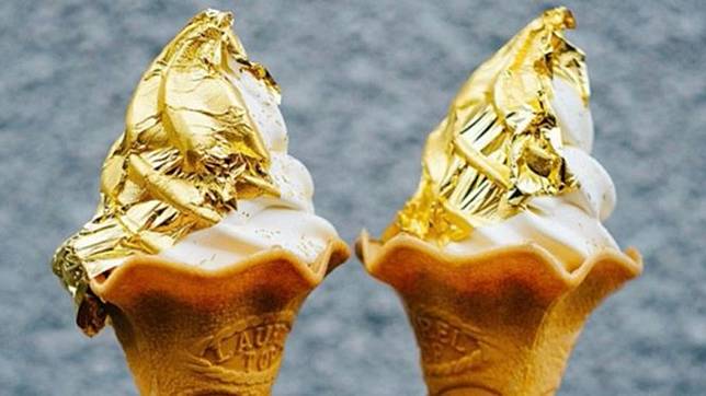 Sesuai namanya, es krim satu ini mempunyai lapisan emas murni. Karena keunikannya, es krim ini paling diburu. Untuk merasakan es krim berlapis emas tersebut, Anda dapat mengunjungi Kafe Hakuichi yang sedang di Kota Kanazawa, Jepang.