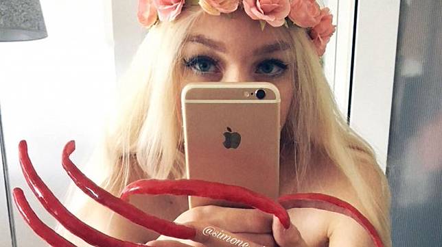 Kuku-kuku Simone semakin panjang dan dia semakin rajin mengunggah potret kuku kesayangannya di Instagram. Komentar negatif pun semakin tidak jarang ia dapatkan namun bukan berarti urusan tersebut menyurutkan obsesinya.