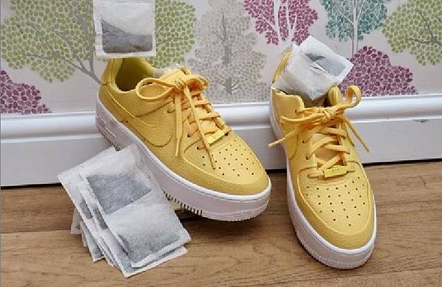 Kantong teh hitam yang diseduh di pagi atau senja hari dapat dipakai sebagai teknik menghilangkan bau sepatu. Hal ini sebab teh hitam berisi tannin yang bisa membunuh bakteri pemicu bau sepatu. Sebelum menempatkan kantongan teh hitam ke dalam sepatu, masukkan kantongan teh hitam ke dalam air panas sekitar dua hingga tiga menit. Setelahnya angkat dan dinginkan kantongan teh panas selama sejumlah saat.